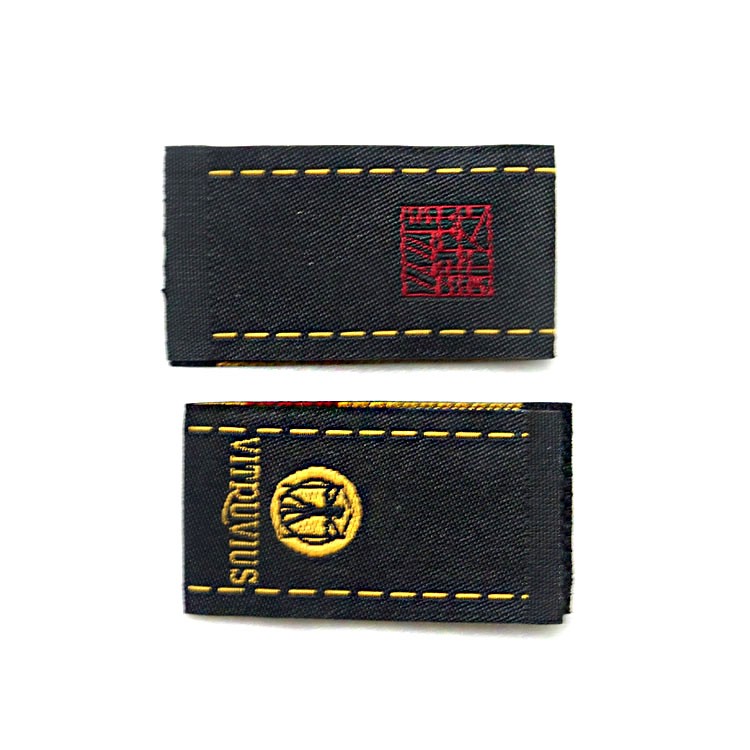 服裝輔料定做廠家織嘜水洗標定制男女裝勾邊高密緞面布標織標