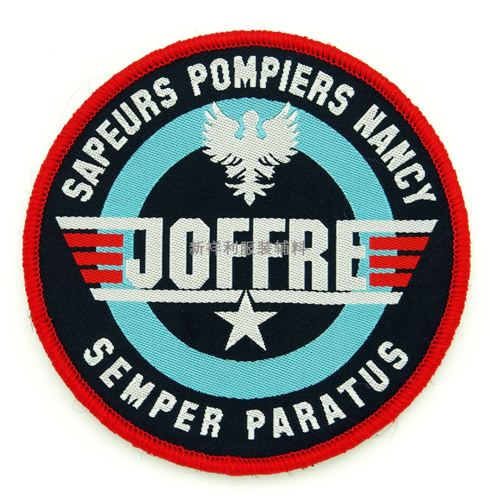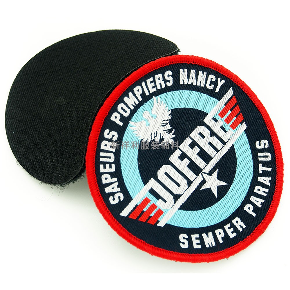 新款背膠織嘜鎖邊圓形繡花章布貼服裝箱包補(bǔ)丁貼可免費(fèi)設(shè)計(jì)LOGO